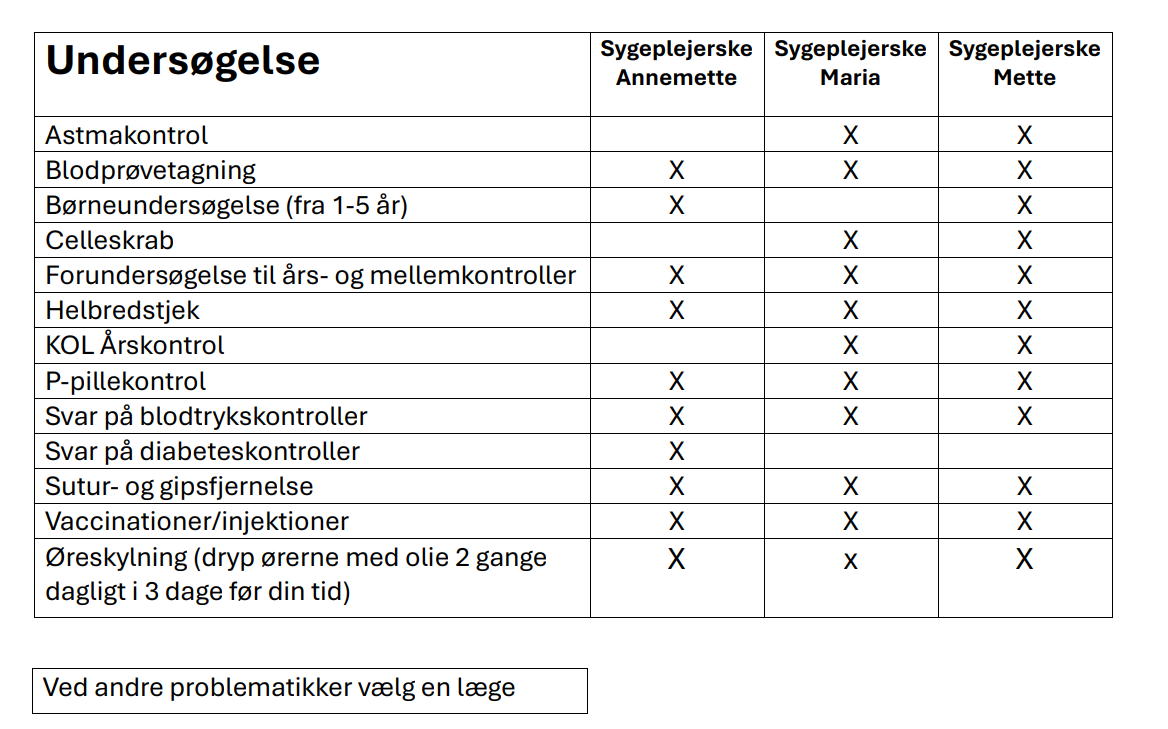 Ved nedenstående undersøgelser skal der bestilles tid ved klinikpersonalet.